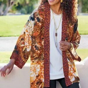 Material: Body: 45% Rayon, 27% Polyester, 25% Nylon, 3% Cashmere; Cuff/Bottom Band: 42% Rayon, 31% Nylon, 24% Polyester, 2% Cashmere, 1% Spandex Condition: Excellent used condition. There is a small separation under the right armpit but it's right on the seam and could easily be mended with a stitch or two or just worn as is. Please see photos for details.