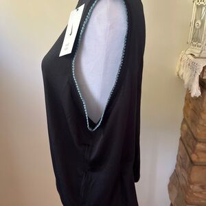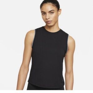 NWT Nike Yoga Black Sleeveless Top Light Blue Trim Womens XL