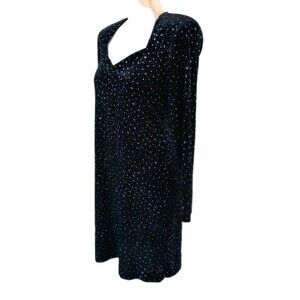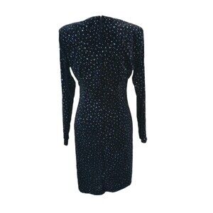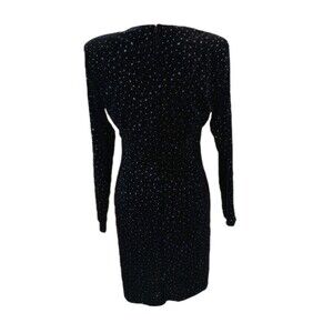 Vtg Velvet Mini Dress Medium 80s 90s Bling Glam Sparkle Long Sleeve Party