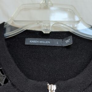 Karen Millen black zip front cardigan with cutout details