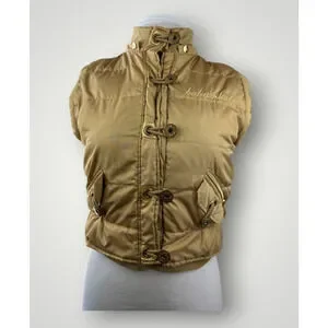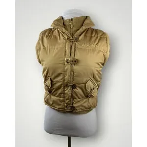 Vintage Y2K Baby Phat Feather Down Puffer Vest Gold Button Zip Womens Size Large