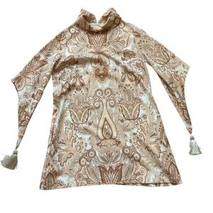 Novella Royale peach paisley Hermosa mini dress size xs tassels festival boho