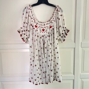 For Love & Lemons White & Red Beaded Cherry Slip Mini Dress Size Large. New without tags!