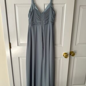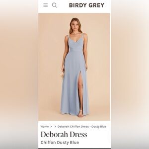 Chic maxi dress by Birdy Grey. Features a pleated bodice and flowing skirt. Ideal for elegant occasions. Deborah Chiffon Dress - Dusty Blue Color.