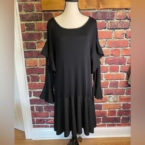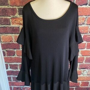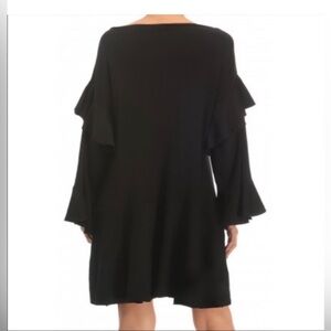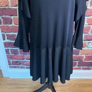Zara Knit Black Flowy Ruffle Bell Sleeve Midi Drop Waist Oversized Dress Size S