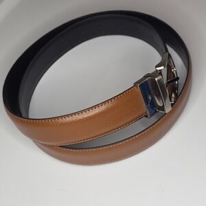 Tommy Bahama Mens 38 Leather Reversible Belt Brown Black Silver Buckle