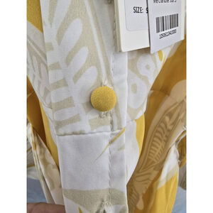 Stunning Moonsea yellow and white floral shirt Sleeve Summer maxi dress. Belted. Covered Buttons. Button to the waist. No flaws or stains. Pockets. NO STRETCH. Ladies Size Small.