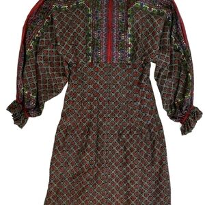 70s Batwing Vintage Paisley Geometric Impressionist Print Prairie Empire Dress