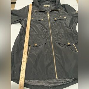 MICHAEL KORS Women's MK Trench Coat with Hood Black Polyester Gold Logo Size XL