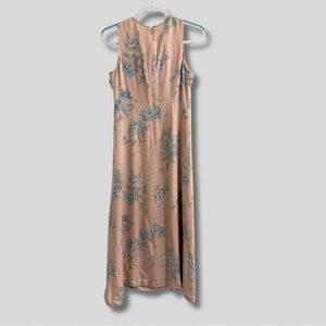 Chic sleeveless dress with floral design. Soft pink with blue accents. 100% Silk
