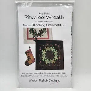 Mellon Patch Designs Itty Bitty Pinwheel Wreath Quilt Pattern 9in X 9in Stocking