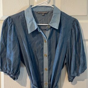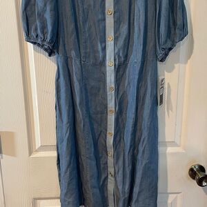 Sharagano size 12.Elegant chambray dress with button-front design. Features a classic collar and short sleeves. A removable belt to match. Easy adjustment to fit you perfect NWT perfect with your cowgirl boots!