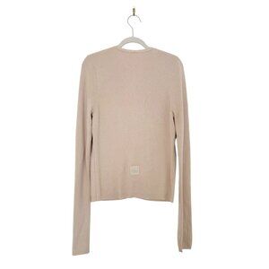 Featuring a deep V-neckline, long sleeves, a ribbed knit style, a relaxed open fit, and a single clasp closure at the bust. V-neck. Long sleeves. Full-length silhouette. Front metal clasp fastening. Material: fine ribbed knit fabrication.