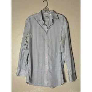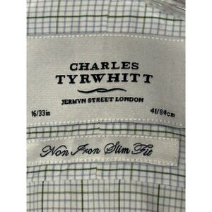 Charles Tyrwhitt 16 33 Non-Iron Slim Fit Shirt Green Blue Pattern 100% Cotton