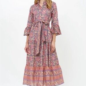 Step into style with this elegant floral maxi dress, featuring charming puff sleeves. The delicate pink floral pattern adds a touch of femininity, perfect for any occasion. From fall 2025 collection. Coordinating girls dress available in size 10 (girls dress runs small)