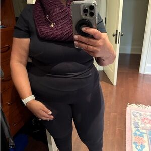 This beautiful purple Coach infinity scarf/neck warmer has beautiful metallic threads running through it and comes with a gold-tone pin with a coach charm on it. I bought this a few years ago but never wore it. It’s interesting condition that you can also gift it. No box but comes with a dust bag BNWOT