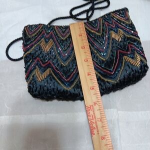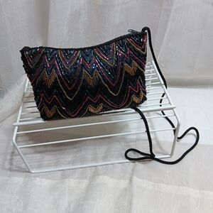 Vintage 1980's Elegant Multicolor Beaded Women's Bag/Clutch W/Strap