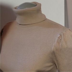 Streetwear Society Tan Turtleneck Sweater with Ruffle Sleeves size Small