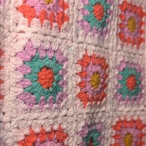 Charming crochet camisole with vibrant pink, orange, and teal squares. Ideal for a colorful touch.