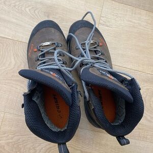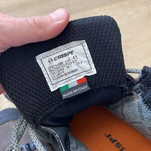 Crispi hiking boots in black and gray. Made in Italy. Durable and stylish for outdoor adventures.