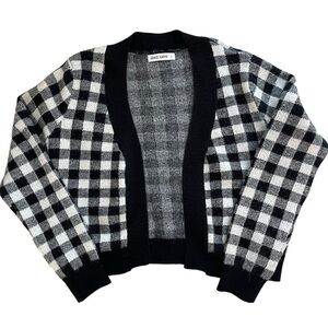 Add a pop of classic pattern to your fall wardrobe with this cozy black and white buffalo check cardigan by Grace Karin. Features a cropped fit, soft brushed knit texture, and an open front, perfect for layering over tanks and tees. Great for school, coffee runs, or crisp autumn days. Pre-owned, like new, no flaws. This is a perfect transitional fall piece, trending for preppy, grunge, or cottagecore aesthetics. The bold buffalo plaid is a timeless favorite that layers well over basics.