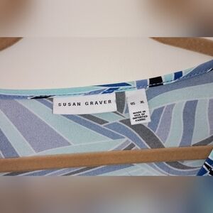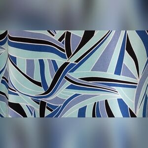 Chic abstract design with a flowy fit and asymmetrical hem. Perfect for casual or dressy occasions. Lightweight and comfortable fabric. Wrinkle free and great for travel. Modern overall geometric abstract pattern. 3/4 sleeve. Like new condition. From a smoke free home.