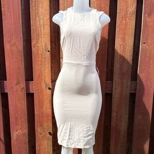 Chic sleeveless dress in a soft peach hue. Ideal for stylish outings.