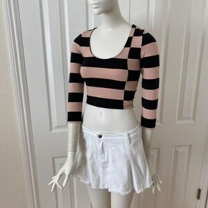 Vintage Bebe black and pink striped 3/4 long sleeve crop top XS