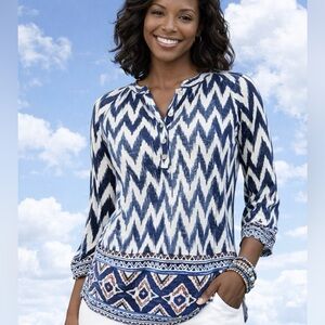 This Talbot’s sleeveless blouse with front knot detail exudes elegance. It is a thistle, pink color, not a garish, hot pink, but with a bit of a lavender undertone. So flattering for so many complexions! Wear it under a jacket or by itself. Pairs perfectly with slacks or a skirt to add a pop of color. Has a convenient side zipper. Women size small measures 18 inches from armpit to armpit and 20 inches in length. This is in like new condition from a smoke free home.