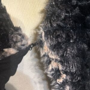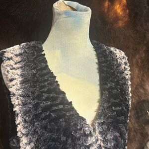 Great condition faux fur vest. this has a one eyelet hook closure and measures approximately 19 inches pit to pit and is 30 inches long.