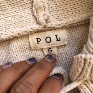Pol Chenille Sweater Cozy Chunky Knit Colorblock Crop Hoodie V Neck