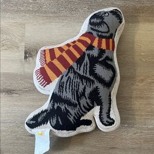 The Farmhouse Cozy Black and Gray Dog Pillow with Striped Scarf. NWOT