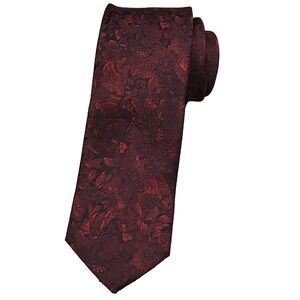 J.Ferrar Burgundy Black Floral Jacquard Men's Necktie Modern Slim
