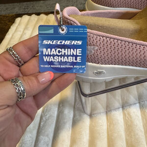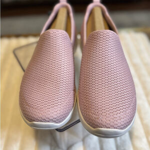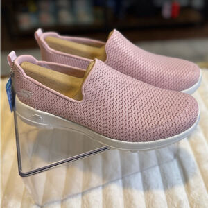 Experience comfort with Skechers slip-on sneakers. Light pink design. Easy to wear.