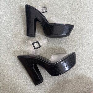 This is a gorgeous black illusion bubble sleeve wiggle dress by pinup couture Laura Byrnes black label. Fall 2016. It is fully lined with two way stretch fabric that flattens the tummy. Overlay is super soft. There is a snag as shown.