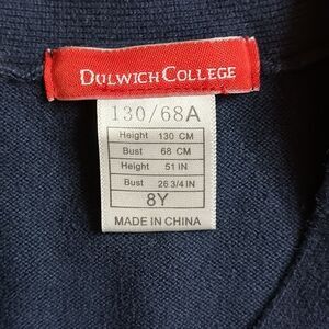 Girls size 8y Dulwich College UK cardigan Navy blue button up cardigan with college crest, 100% cotton.