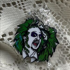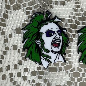 Green and White Beetlejuice Character Earrings