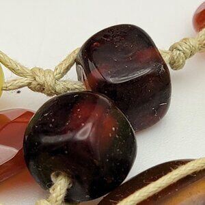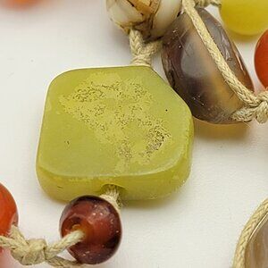 Vintage Artisan Hand Knotted Multicolor Agate Gemstone Cord Necklace 47"
