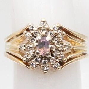 Solid 14K yellow gold woman’s lady’s natural alexandrite diamond ring band 6.75