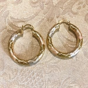 14K gold plate Tri-color Textured Hoop Earrings