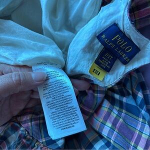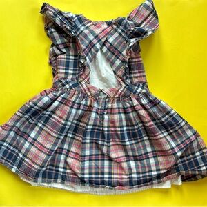 Charming plaid dress with ruffle details. Perfect for casual wear. Ruffled trim and a cutout at the back give this cotton dress a cute warm-weather look. Lined. Buttons in the back. Size 2/2T. Brand is Polo Ralph Lauren. 5.2 oz