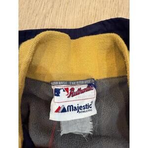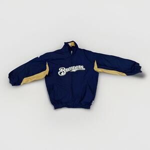 This piece captures that classic early-2000s MLB look—Majestic was the official outfitter for Major League Baseball from 2005 until 2019. The bold Brewers script and color-blocked sleeves give it a vintage sportswear edge, making it ideal not only for fans but also for collectors of retro athletic apparel.