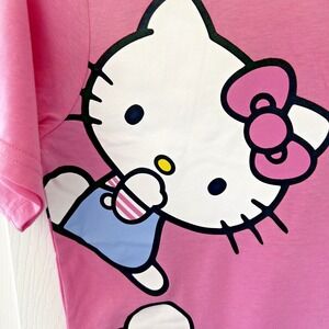 Product by Sanrio 2024. Pink with Kittys all over front and back. Super cute t-shirt. Size large Girls, Youth.