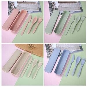 Portable Cutlery, Wheat Straw Cutlery, Spoon Knife Fork Tableware set