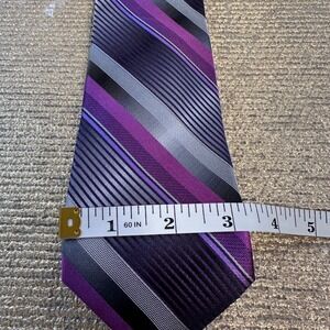 VAN HEUSEN Men's Purple, Grey & Black Stripe Silk Necktie NWT Business Office