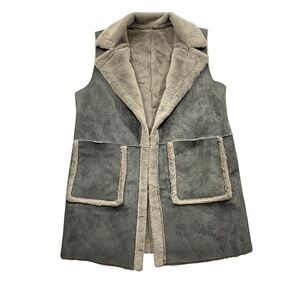 Lauren Ralph Lauren Vest Medium 100% Polyester Front Pockets Faux Fur Lined