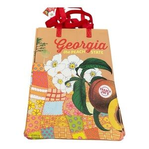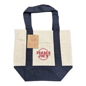 Lands' End Medium 5 Pocket Open Top Canvas Tote Bag, Red & White, New w/Tags.
