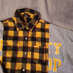 AKIRA Tomboy Babe Jacket Gray / Yellow-Black Plaid Terry/Flannel Oversize S