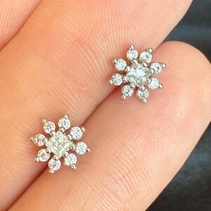 925 Sterling Silver Floral Cubic Zirconia Stud Earrings