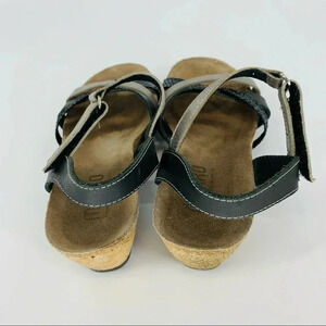 Eden sandal with a moderate wedge outsole and cork midsole is the latest look in footbed sandals. A mixed-media sandal with criss-cross straps and hook & loop ankle strap for an easy fit adjustment.